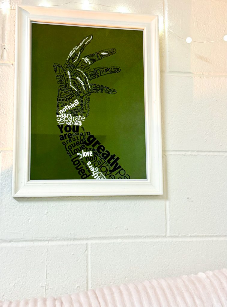 Lord, I lift Chloe to You and ask that this poster be more than words on a wall—may it be a constant reminder of her worth and identity in You. When she faces trials, let her find joy knowing that You have already walked the path of suffering for her. When she doubts, remind her that she is deeply and unconditionally loved, and that love overflows into the way she treats others. When she feels alone, anchor her in the unchanging truth that nothing, that no fear, no failure, no circumstance, can separate her from Your love.